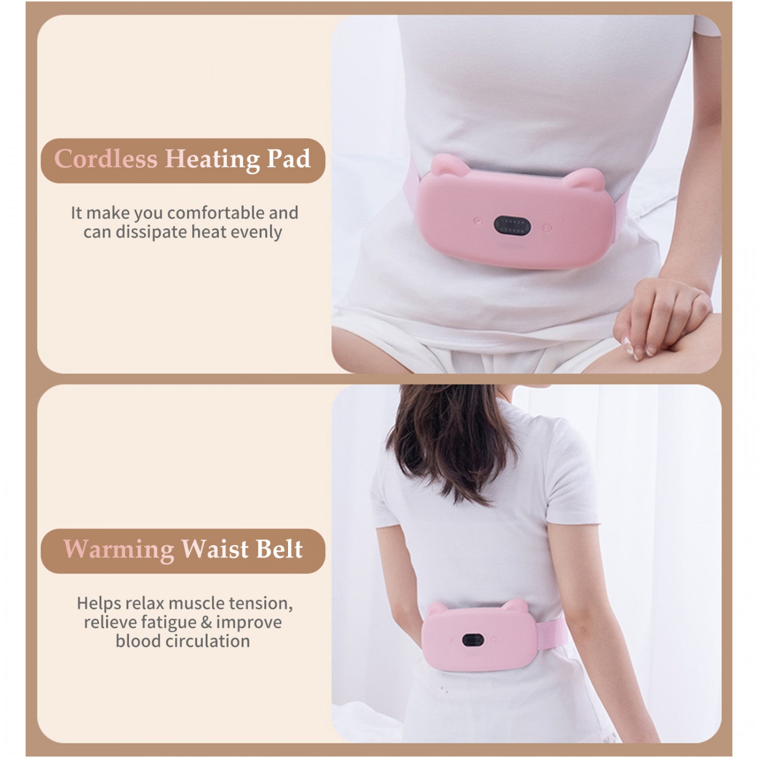 - 【Widely Use】The pink menstrual relief pad can be used in multiple scenarios. The belt is charged through the USB port. You can have a break with its heating or vibration features on at home, at the workplace, on the way to work, or in other scenarios