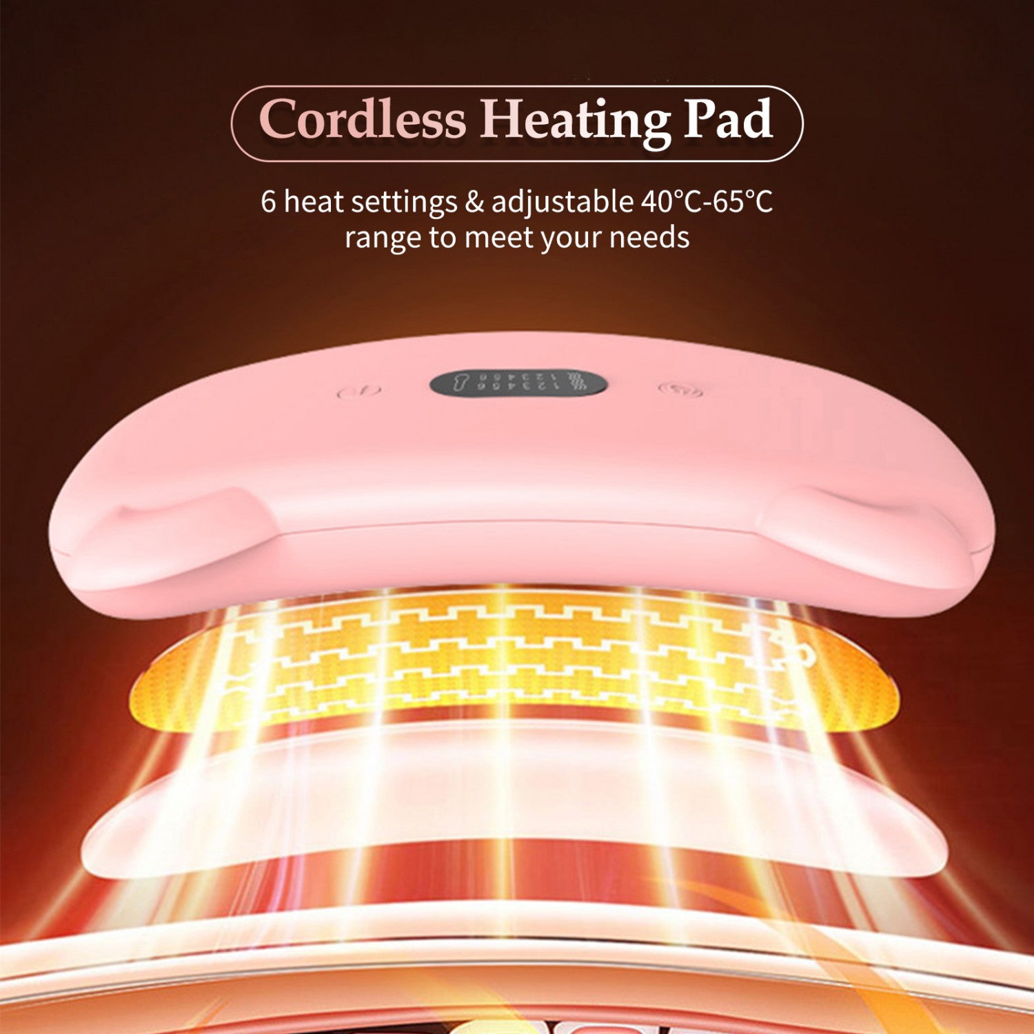 - 【Multi-function】: a wireless portable heating pad boasts 3-speed quick heating and 4-speed vibration modes. You may adjust the temperature and massage mode to get the most comfortable setting for relieving discomfort on your abdomen or waist.